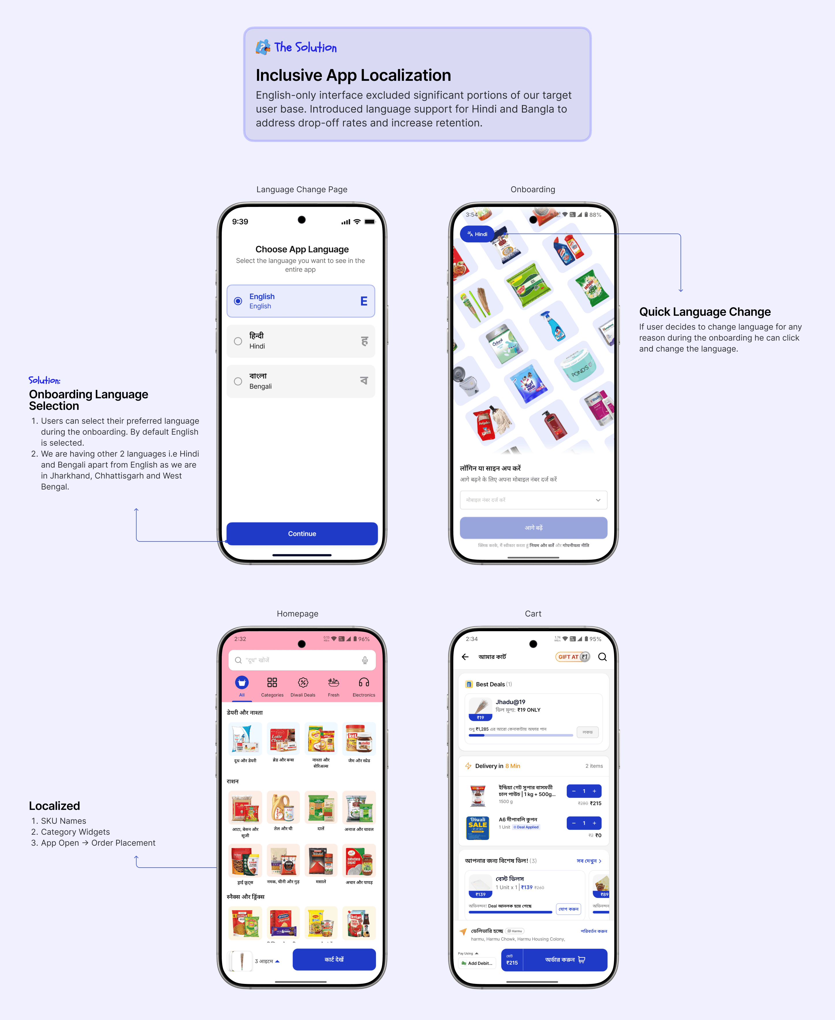 A Quick-Commerce company with more than 150 stores serving both offline & online in Jharkhand, Chhattisgarh & West Bengal serving primarily for Tier 2-3 city users, where I designed at scale across Apna Mart's ecosystem.