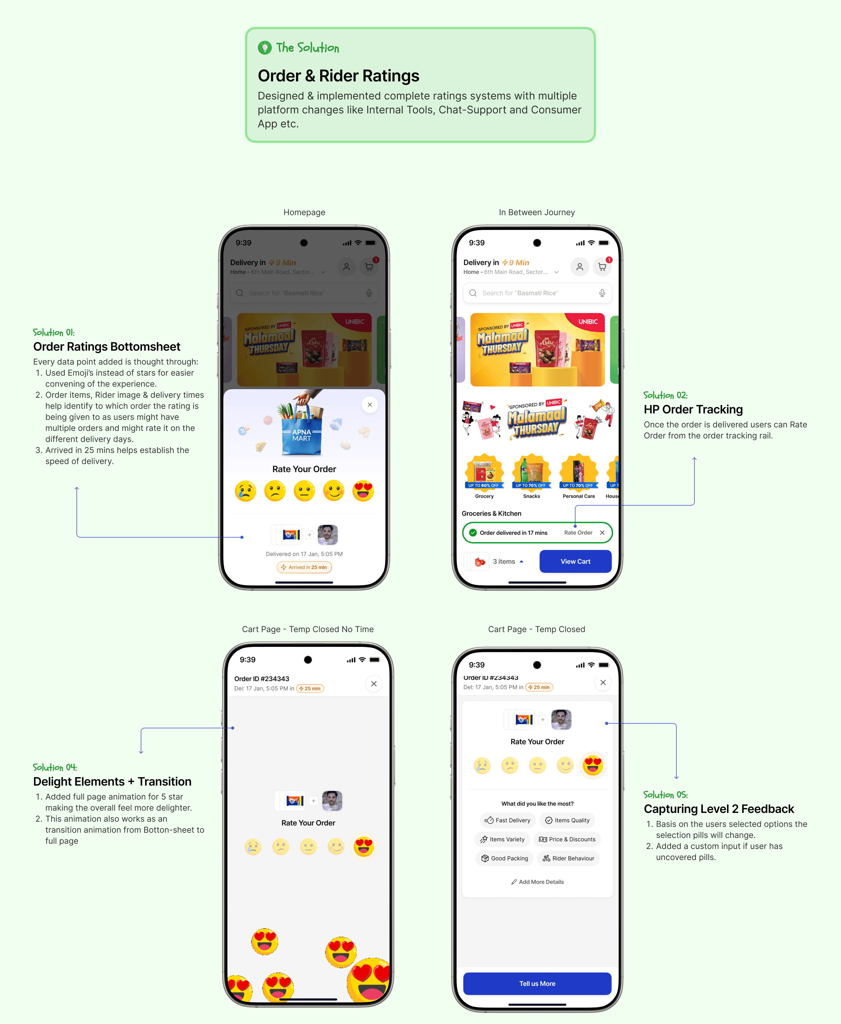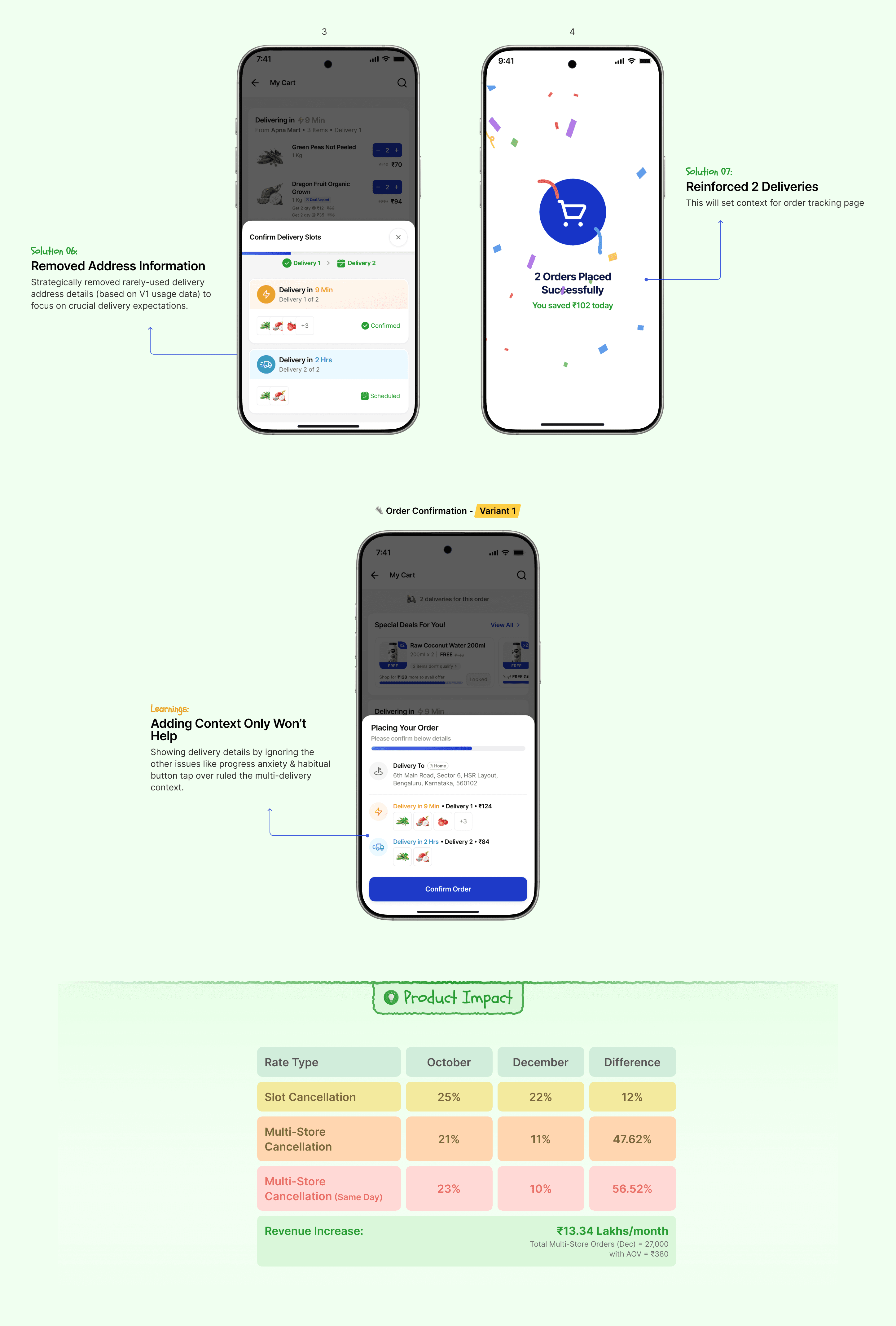 Thoughtful Friction: Strategically introduced friction (like Order Confirmation bottom sheets) for crucial clarity, directly reducing cancellations due to uncertainty