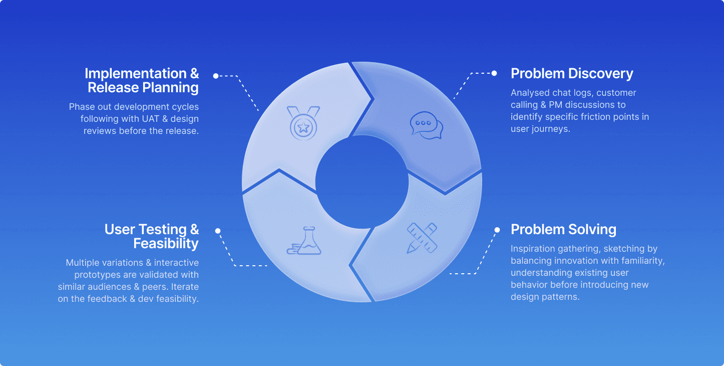 Working in this rapidly scaling environment meant designing solutions that addressed immediate user needs while supporting overall business efficiency, scalability, and strategic growth. Every decision had to consider complex interdependencies, technical constraints, and extensive cross-team collaboration.