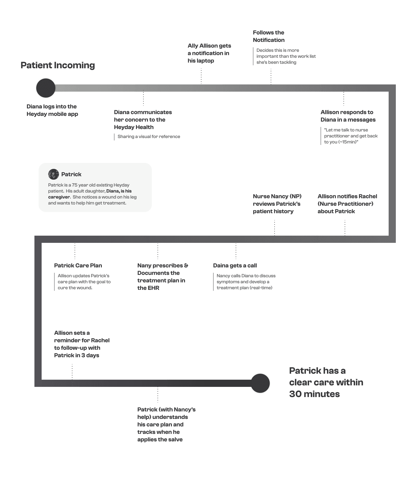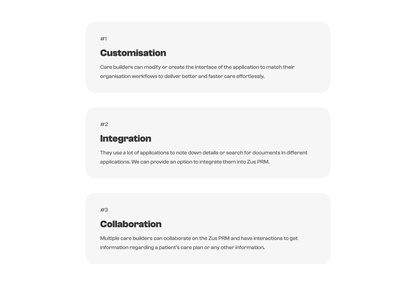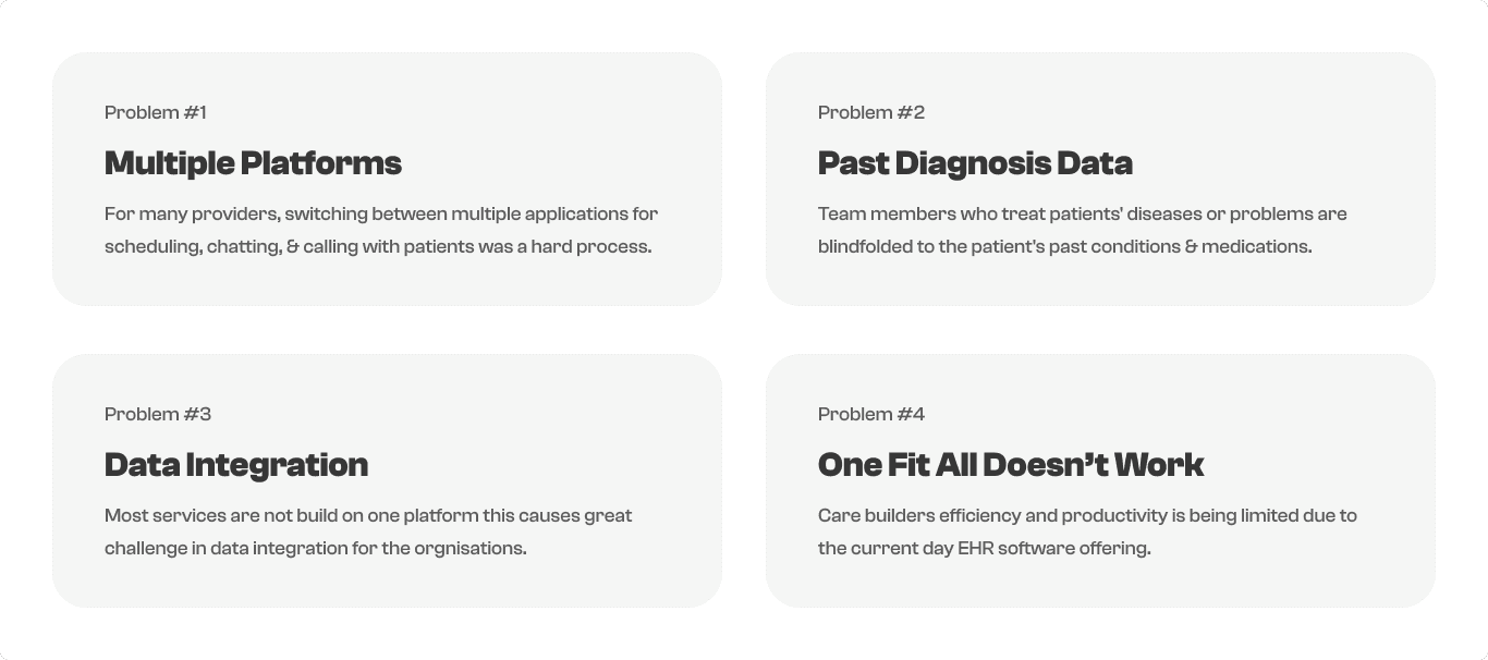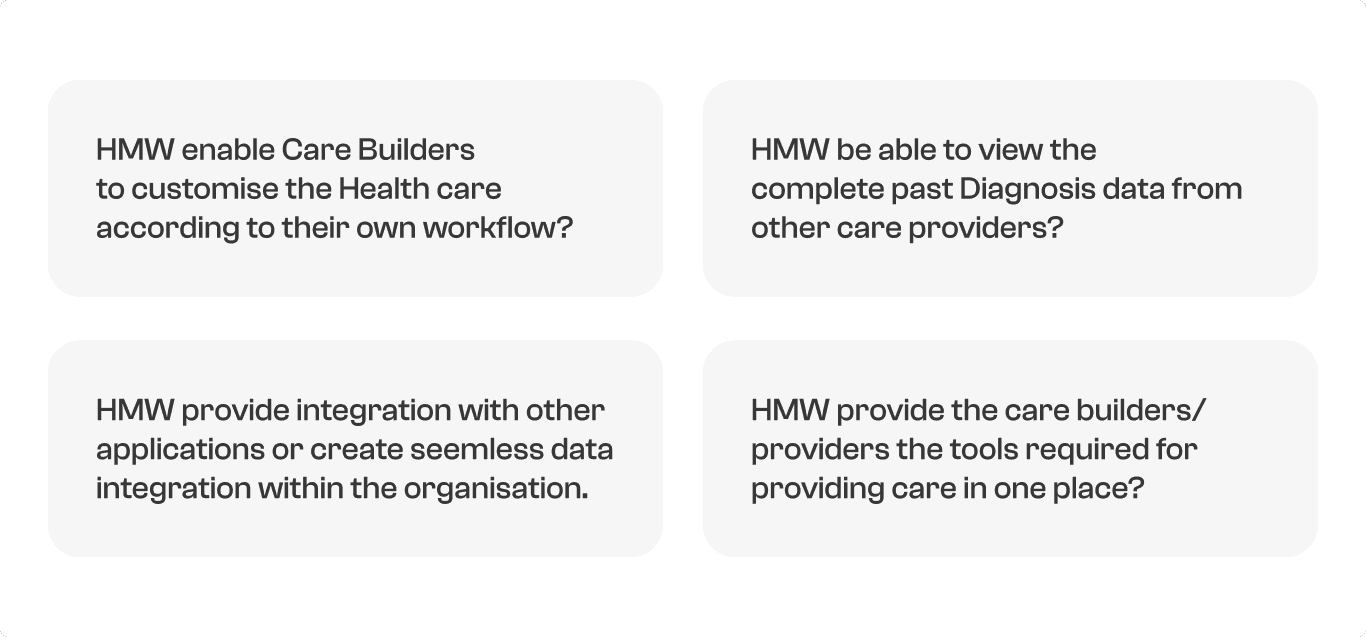 For the MVP, we have taken a path that addresses the How might we mentioned above faced by Care Builders, Providers, and Patients.